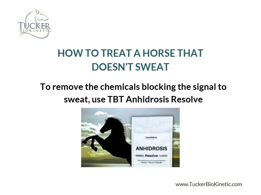 The best care for a horse with anhidrosis is to get rid of the bad chemicals causing the anhidrosis. You can do this using TBT Anhidrosis Resolve.